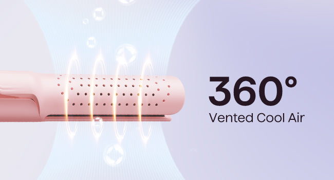Go with the (air)flow. This innovative 3-in-1 tool features 140 air outlets that blow cool air, surrounding strands with 360° cold air-styling technology to minimize heat damage and maximize hold. Like a cool-shot on a hair dryer, it sets curls while you style. Switch from silky-straight to beachy waves or curls, without swapping tools. With a 30-second heat-up time and a rotating temp dial with 5 heat settings (280°F to 430°F), it’s set to be your next hair holy grail.