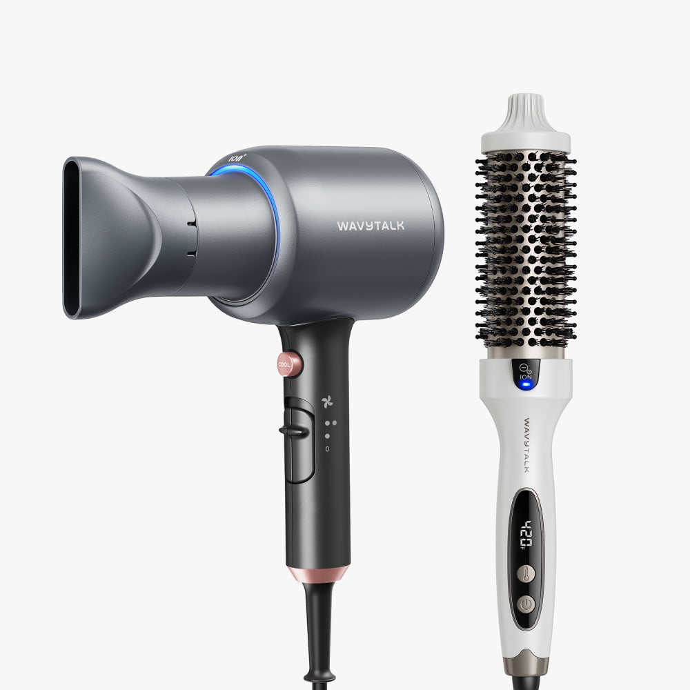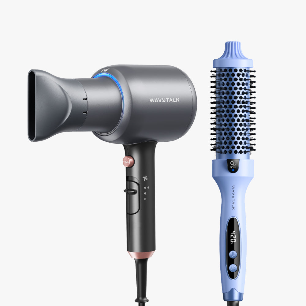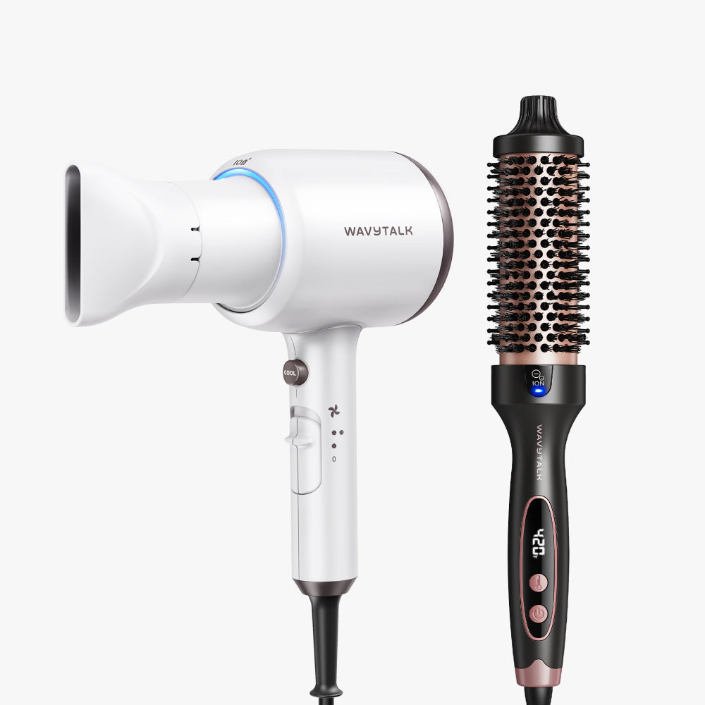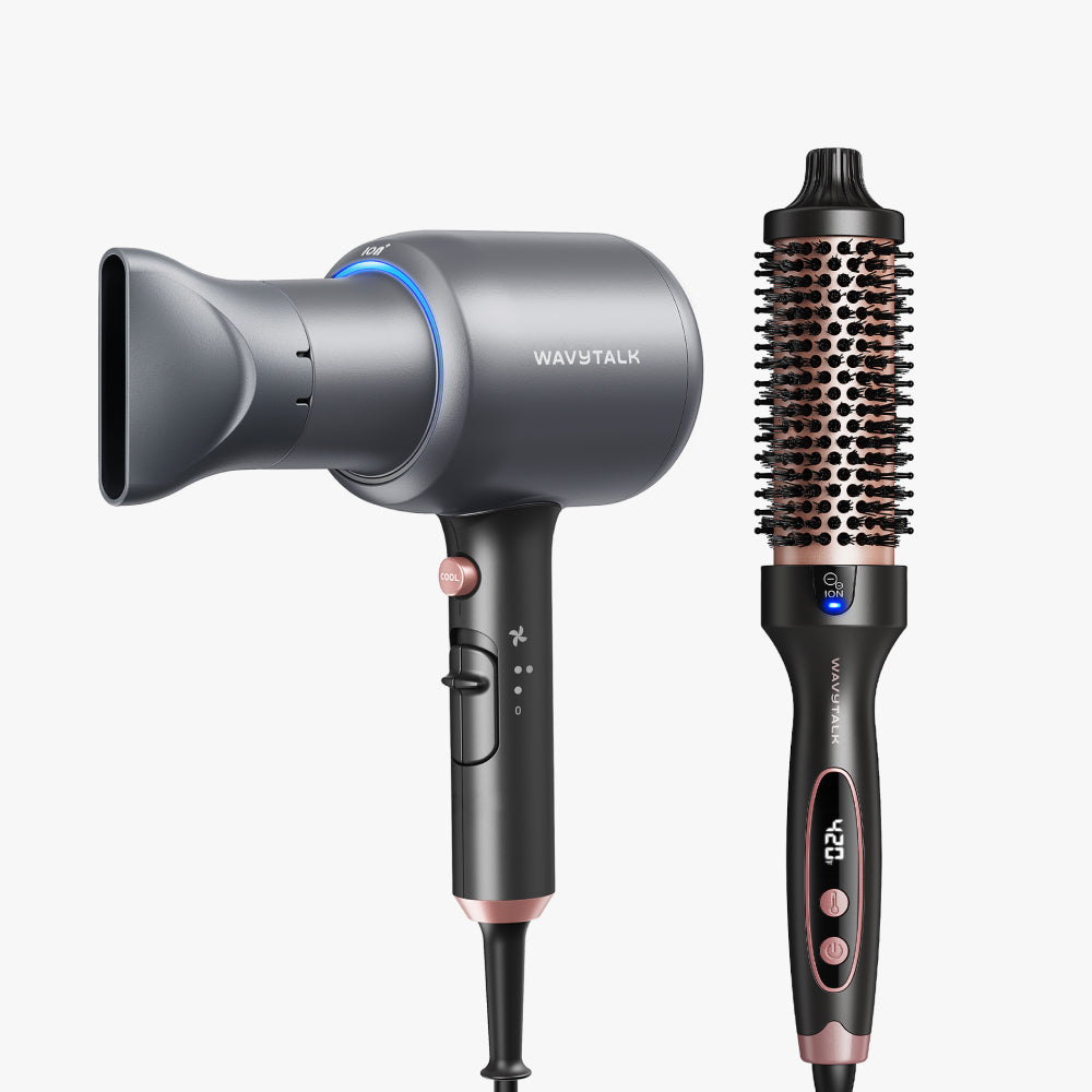 A classic blowout duo that delivers volume and shine. Blown Away dries hair faster with high-powered airflow, while Blowout Boost adds body, smoothness, and frizz-free finish.